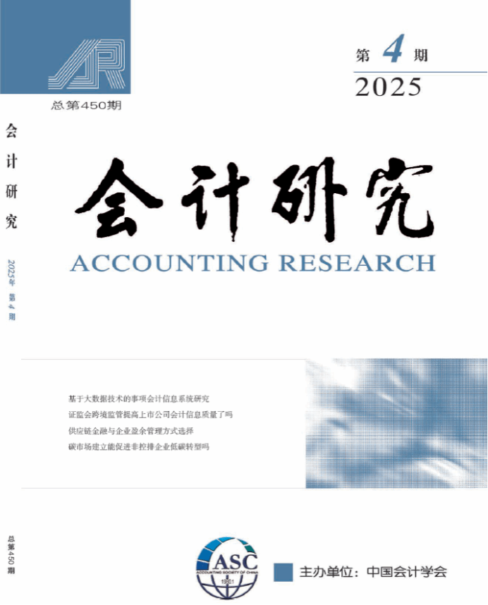 《会计研究》是财政部主管、中国会计学会主办的国家一级学术期刊,是国家自然科学基金委员会确定的管理科学A类重要期刊,是CSSCI来源期刊中唯一的会计类学术期刊,是学术界公认的会计学权威期刊。刊物紧密结合中国经济和社会发展的实践,突出学术前瞻性、政策指导性和现实针对性,致力于推动会计理论的繁荣和发展,已经成为集中反映我国高质量会计研究成果的学术平台。2023年度《会计研究》复合影响因子为9.315,期刊综合影响因子为5.283。