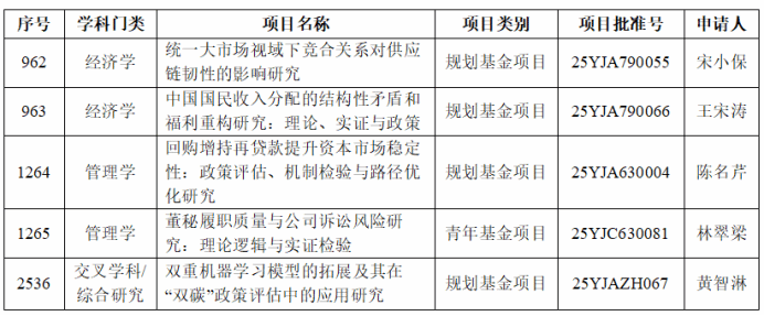 近日,教育部社科司正式发布了2025年度教育部人文社会科学研究一般项目立项名单,德赢官网在此次立项中表现优异,共有5项项目成功获批,其中包括规划基金项目4项、青年基金项目1项。