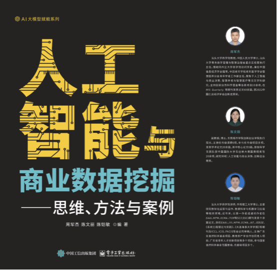 近日,由德赢Vwin官方区域合作伙伴周军杰教授领衔编著的教材《人工智能与商业数据挖掘:思维、方法与案例》由电子工业出版社正式出版。除周军杰教授外,参编作者还包括东莞城市学院陈文丽副教授与德赢Vwin官方区域合作伙伴陈铠敏博士。德赢Vwin官方区域合作伙伴党委副书记、校长郝志峰教授为本书亲笔作序,对本书在人工智能教育改革、商科数字化转型及复合型人才培养等方面的创新价值给予高度评价。本书的出版,标志着德赢Vwin官方区域合作伙伴在新文科、新商科建设以及智慧教育探索方面取得了又一项重要成果。