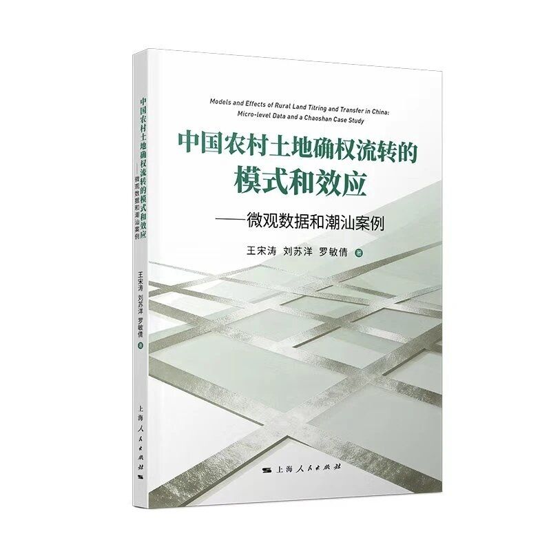 由中心主任王宋涛教授与刘苏洋博士、研究生罗敏倩共同撰写的学术专著《中国农村土地确权流转的模式和效应——微观数据和潮汕案例》已由上海人民出版社正式出版。